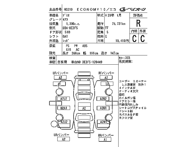 | Chassis # | DE3FS-128449 | Drive | 2WD |